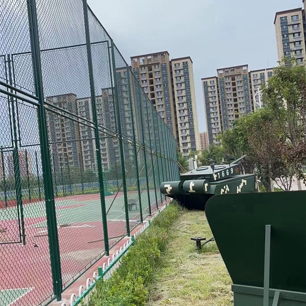 (1)包塑絲徑:3.8MM (2)網孔 50 MM X 50 MM (3)尺寸:3000MM X 4000 MM (4)立柱:直徑60/2.5MM鋼管 (5)橫柱:直徑48/2MM鋼管焊接 (6)連接方式:卡接 (7)防腐處理:浸塑 體育場圍網產品優點: 產品色彩鮮亮,抗老化,耐腐蝕,規格齊全,網面平整,強力張緊,不易受外力撞擊變形。現場施工安裝,產品最大特點是靈活性強,可根據現場要求隨時調整造型和尺寸。 主要市場:對質量要求較高的網球場地,籃球場地,綜合場地圍網