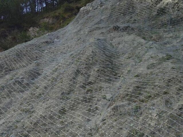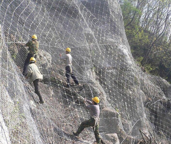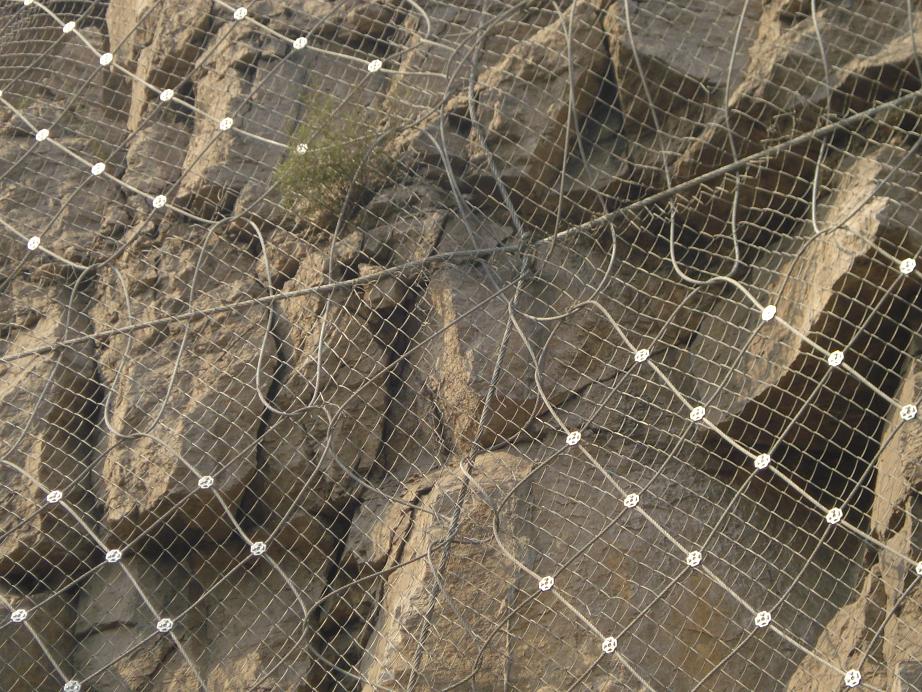 主動(dòng)防護(hù)系統(tǒng)是以鋼絲繩網(wǎng)為主的各類柔性網(wǎng)覆蓋包裹在所需防護(hù)斜坡或巖石上,以限制坡面巖石土體的風(fēng)化剝落或破壞以及為巖崩塌(加固作用),或?qū)⒙涫刂朴谝欢ǚ秶鷥?nèi)運(yùn)動(dòng)(圍護(hù)作用)。是柔性防護(hù)網(wǎng)的一種。