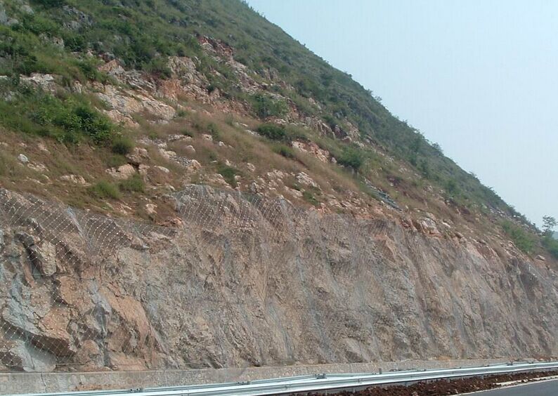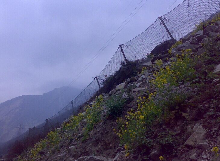 產品說明:被動防護網由鋼絲繩網或環形網(需阻攔小塊落石時附加一層鐵絲格柵),固定系統(錨桿、攔錨繩、基座和支撐繩)、減壓環和鋼柱四個主要部分構成。