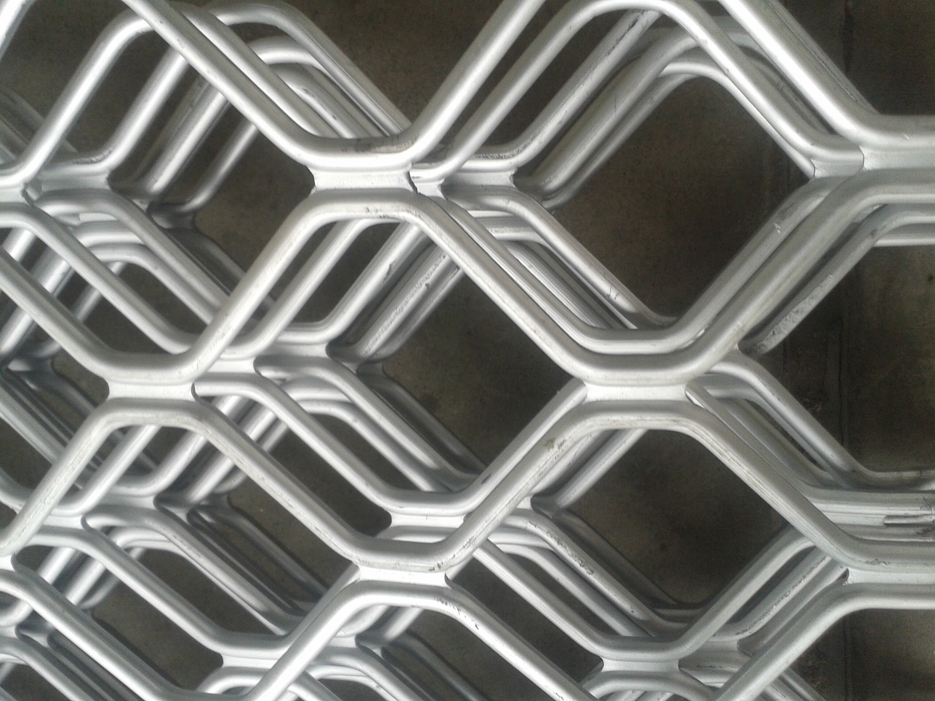 美格網的網孔越小,要求絲經越細,網孔 越大,要求絲經越粗。比如說6.5cm的網孔孔徑,要求鐵徑為3.5mm-4mm。再細一焊即斷,再粗太重,工人不能承受。