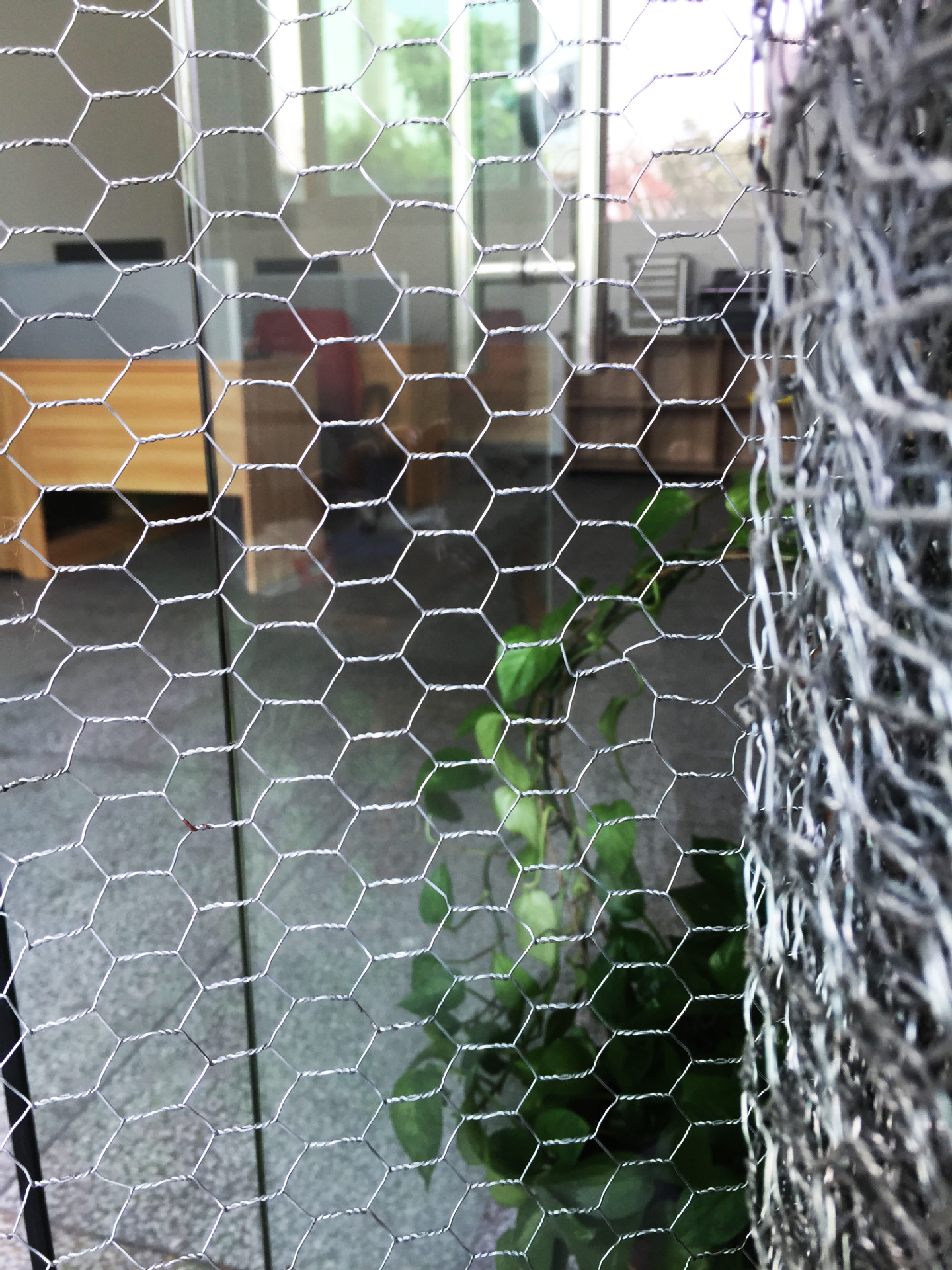 (8)鍍鋅絲包塑擰花網(wǎng)是在鍍鋅鐵絲的表面包一層PVC保護(hù)層,再編織成各種規(guī)格的擰花網(wǎng)。這層PVC保護(hù)層將會(huì)大大增加網(wǎng)的使用壽命,并且通過(guò)不同顏色的選擇,使其能和周圍的自然環(huán)境相融合。
