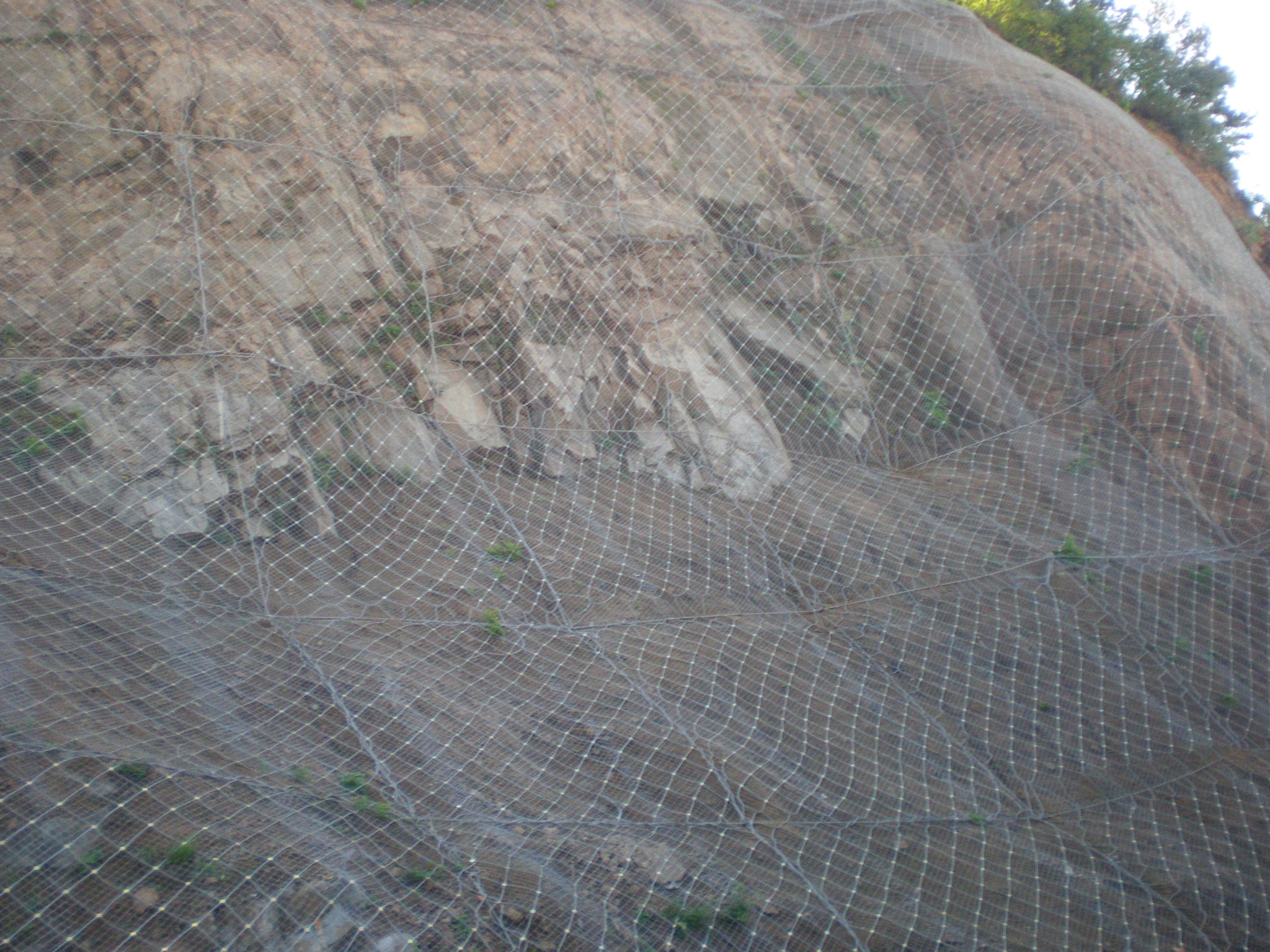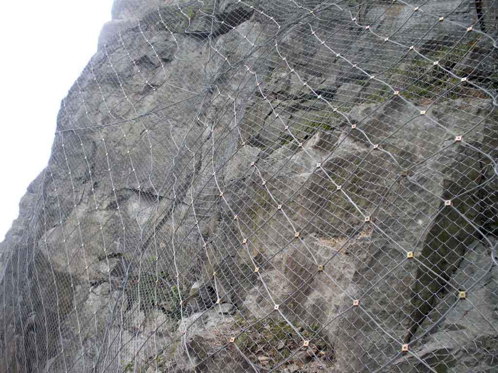 產(chǎn)品說明:TECCO鋼絲格柵網(wǎng)防護(hù)系統(tǒng)屬于SNS(Safety Netting System)主動(dòng)防護(hù)系統(tǒng).TECCO鋼絲格柵網(wǎng)通過預(yù)應(yīng)力鋼筋(錨桿)或鋼絲繩錨桿(有邊沿支撐繩時(shí)采用)、專用錨墊板以及必要時(shí)的邊沿支撐繩等固定方式,將柔性防護(hù)網(wǎng)覆蓋在有潛在地質(zhì)災(zāi)害的坡面上;預(yù)應(yīng)力錨桿對(duì)柔性防護(hù)網(wǎng)部分實(shí)現(xiàn)預(yù)張,從而對(duì)整個(gè)邊坡形成連續(xù)支撐,其預(yù)張拉作業(yè)使系統(tǒng)盡可能緊貼坡面并形成了抑制局部巖土體移動(dòng)或在發(fā)生局部位移或破壞后將其裹縛(滯留)原位附近的預(yù)應(yīng)力,從而實(shí)現(xiàn)其主動(dòng)防護(hù)(加固)功能。