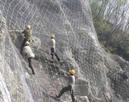 邊坡防護網在我國的廣泛應用:我國是個多山國家,特別是西部和東南部山區,崩塌落石、泥石流、溜坍、溜滑、塌落和風化剝落等斜坡坡面地質災害常有發生,尤其在鐵路、公路這樣的線狀工程沿線最為嚴重,其災害的發生具有點多、面廣、線長等特點,在有限的資源(人力、物力、財力)條件下防護治理非常困難甚至防不勝防,成為威脅臨坡工程正常運營的主要因素。長期以來,在斜坡坡面地質災害防治方面,廣大巖土工程技術人員積累了大量經驗,建立了以護、頂、錨噴、攔為主,以排水、土石體改良、植被綠化等為輔的SNS柔性防護工程防治措施,并尤以漿砌片石或噴砼護坡、錨固、漿砌片石攔石墻和簡易鋼結構柵欄等最為常見。然而,由于地質災害本身的復雜性、隨機性、區域差異性和多發性,上述以剛性圬工結構為主的傳統技術措施還不足以經濟而有效地解決各種復雜的坡面地質災害問題,尤其在防治以動力高速沖擊為主要表現形式的崩塌落石、泥石流類地質災害方面。由于經濟技術和認識水平等歷史原因,既有山區工程特別是道路工程留下了很多具有潛在面地質災害的邊坡,隨著時間的推移,自然驅動力將很可能誘發災害的發生,不得不重新考慮邊坡的防治問題,這在一些山區鐵路沿線上逐年增多的邊坡防護網工程就是明顯的例證。