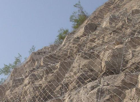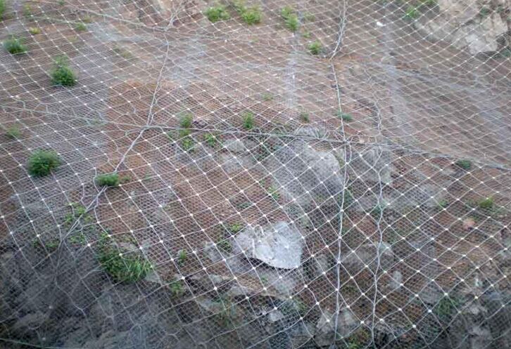 主動防護主動防護系統是以鋼絲繩網為主的各類柔性網覆蓋包裹在所需防護斜坡或巖石上,以限制坡面巖石土體的風化剝落或破壞以及為巖崩塌(加固作用),或將落石控制于一定范圍內運動(圍護作用)。具有高柔性,高防護強度,易鋪展性。適應任何坡面地形,安裝程序標準化、系統化。 簡單類型:邊沿(或上沿)鋼絲繩錨桿+支撐繩+縫合繩(D0/08/300鋼繩網+上下沿錨固+上下沿(或橫向)支撐繩) 邊沿(或上沿)鋼絲繩錨桿+支撐繩+縫合繩(D0/08/300鋼繩網+上下沿錨固+上下沿(或橫向)支撐繩) 普通型號:系統鋼絲繩錨桿+支撐繩+縫合繩,孔口凹坑+張拉[或邊沿(上沿)錨固(鋼索錨桿2-4m距4.5m)+縱橫向支撐繩(2-∮16)+鋼絲繩網(◇08/300/4*4㎡)+縫合繩(∮8)]。